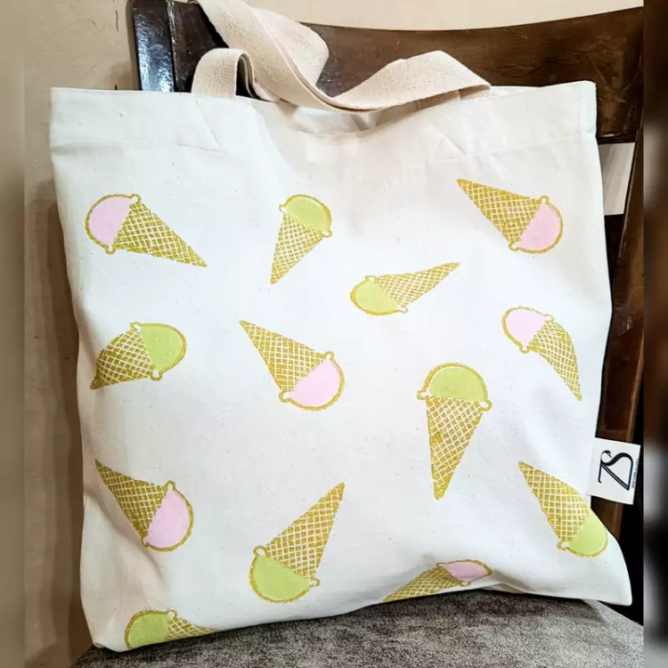 ساک دستی پارچه ای طرح بستنی قیفی ✅مناسب برای خرید، دانشگاه و .. ✅بسیار سبک ✅بند بلند رودوشی ✅ قابل شستشو، رنگ ثابت و بدون آبرفت ✅سایز حدود 38 در 40