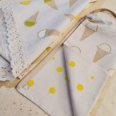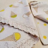 رومیزی نخ پنبه چاپ دستی رنگ ثابت سایز: cm98*85 صددرصد پنبه طراحی شده با مُهر دستساز دوردوزی شده با نوار گیپوری