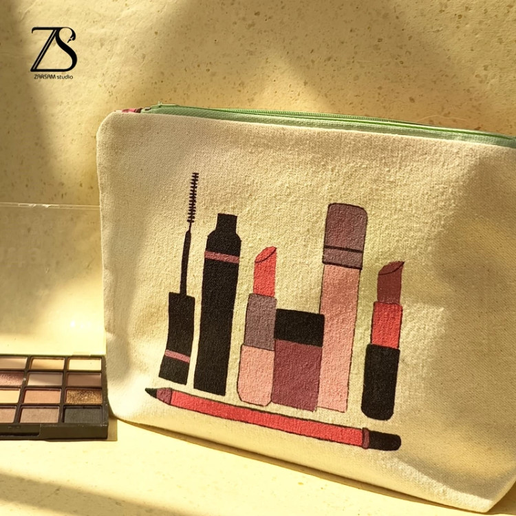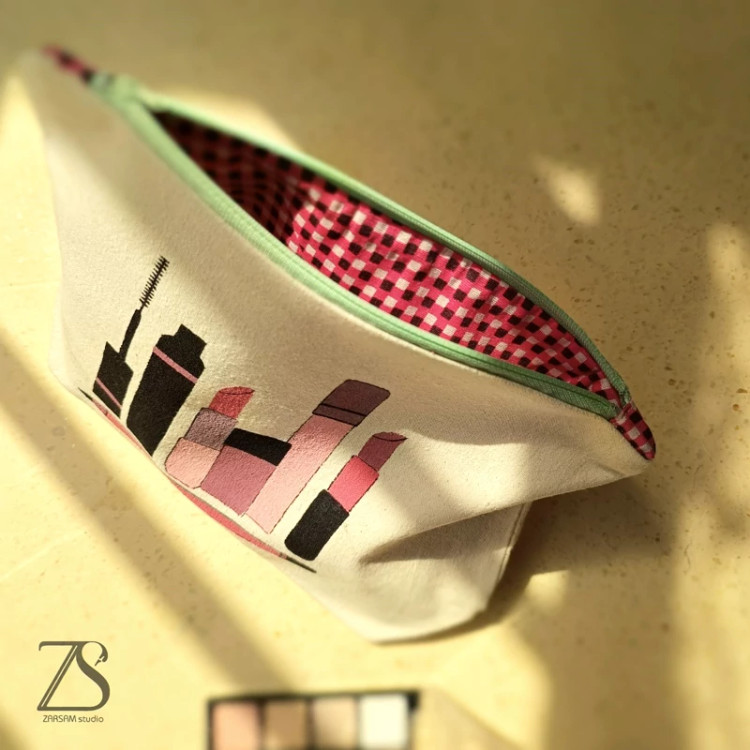 💄💅🏻باور کن.. که این کیف خاص ترین و سبک ترین کیف پارچه ای وسایل آرایشی هست که تا حالا دیدی!!😍🤩 با این تفاوت که اصلا شل نیست و ایستایی قابل قبولی داره، این کیف قابل شستشو در ماشین لباسشویی هست، جنس پارچه بسیار مقاومه و برای نقاشی از رنگ مخصوص پارچه استفاده شده و رنگش هم ثابته✨🤩 〰️〰️〰️〰️〰️〰️〰️〰️〰️〰️ مشخصات کیف لوازم آرایش ✅جنس پارچه:الیاف طبیعی(متقال ضخیم) ✅سایز 27.15 cm ✅نقاشی شده با قلمو و رنگ پارچه ✅قابل شستشو، رنگ ثابت و بدون آبرفت ✅طرح و سایز به سلیقه شما قابل تغییر است 💅🏻💄👝😍✨