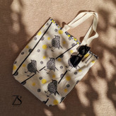 ساک دستی پارچه ای الیاف طبیعی دورو چاپ شده با مُهر دستساز قابل شستشو