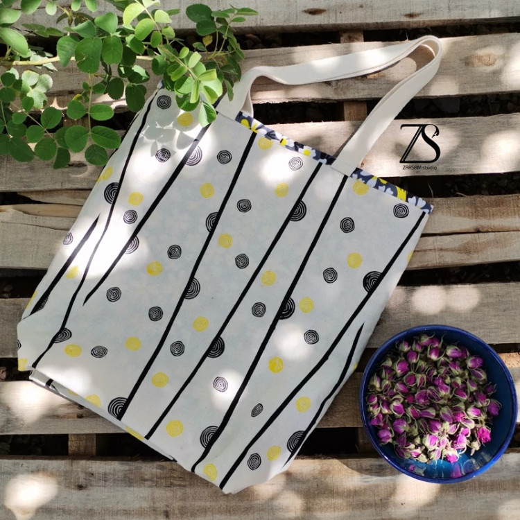 مشخصات: ✅جنس پارچه: متقال ضخیم ✅سایز:cm 42*48/ کفه6cm/ بند بلند دستی و رودوشی45cm الیاف طبیعی ✅آستر کیسه ای(رنگ آسترها با توجه به پارچه های موجود تغییر میکند) ✅قابل شستشو، رنگ پارچه(صددرصد ثابت) و بدون آبرفت ✅ابزار اولیه چاپ پارچه قابل سفارش هست💫🤩