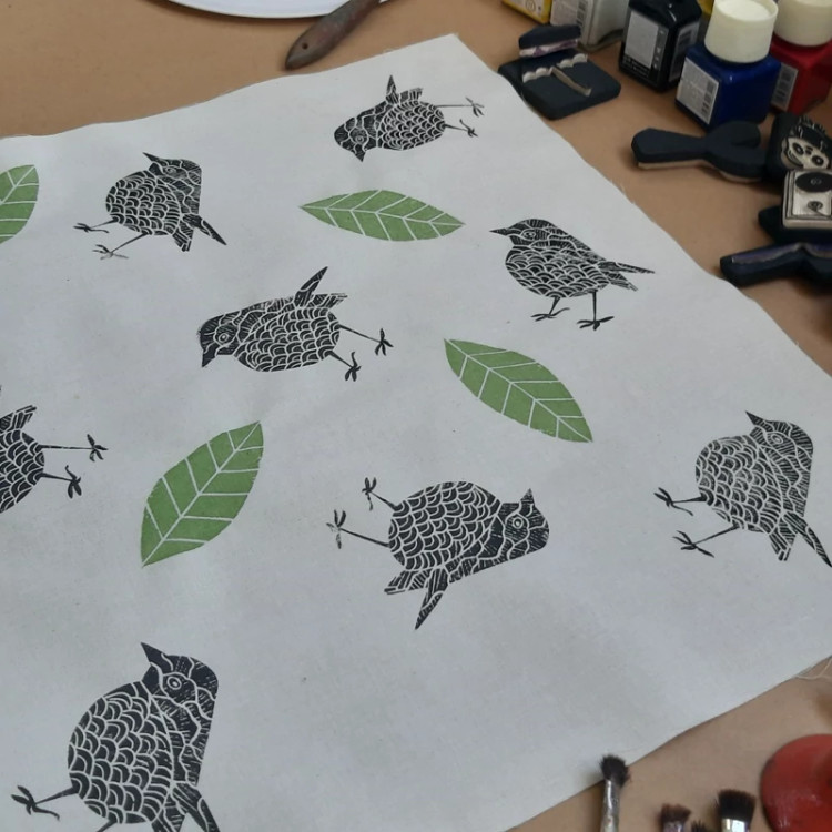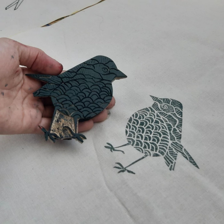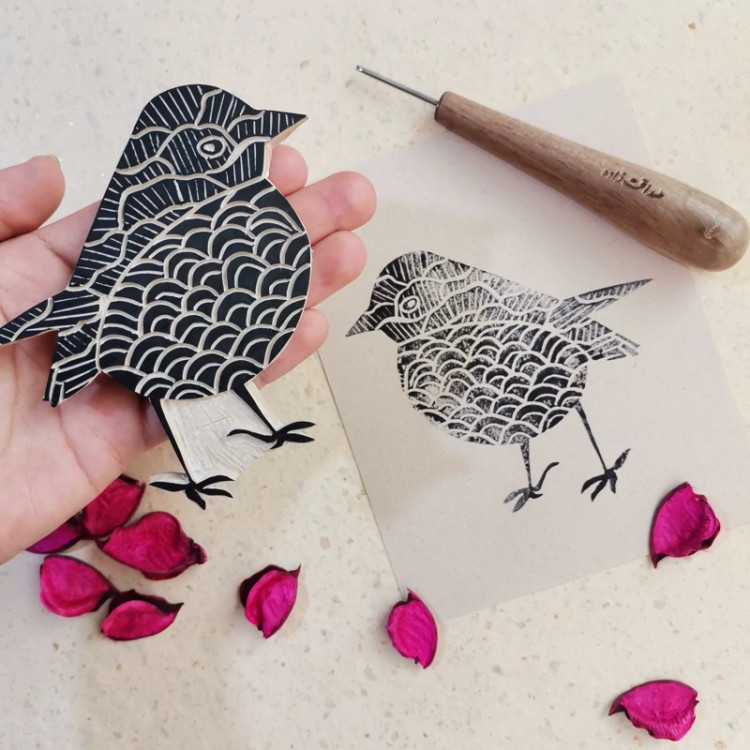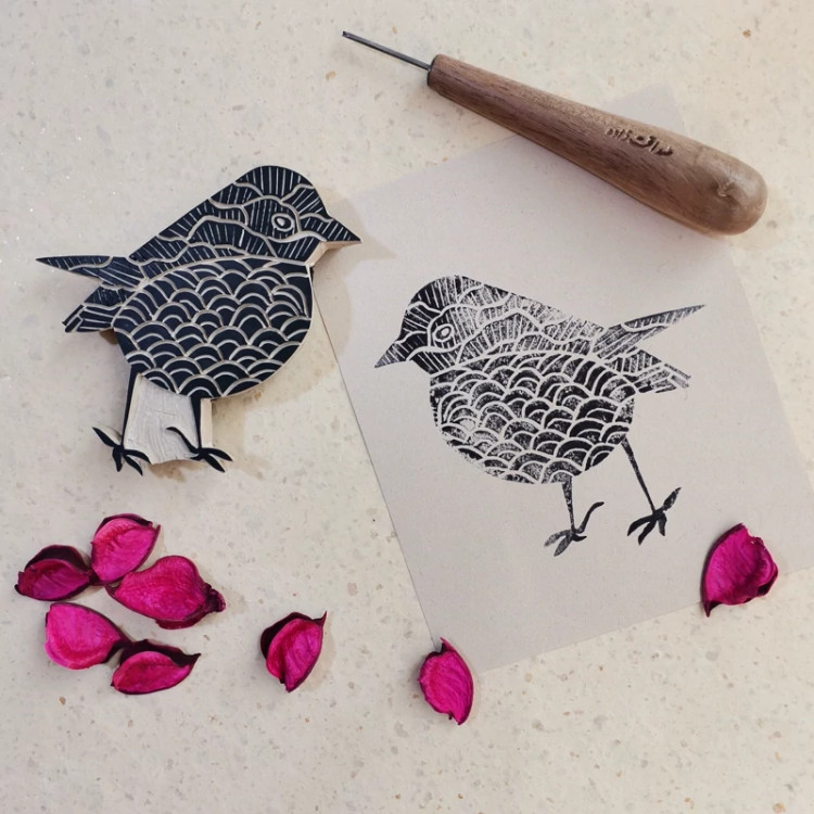 مهر دستساز لینولئوم طرح گنجشک